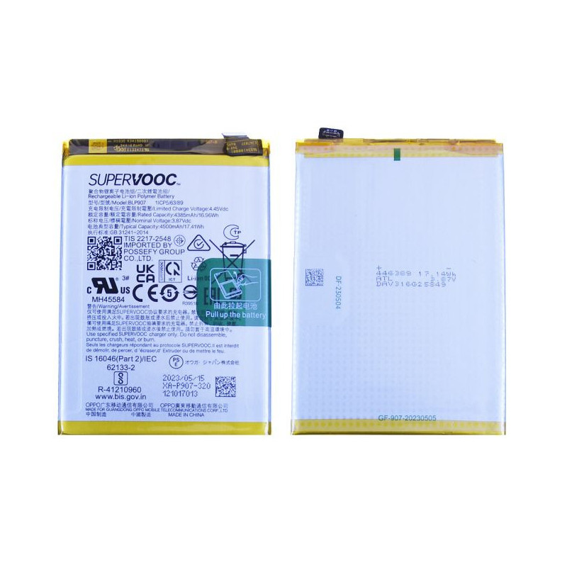 Reno8 Lite / Reno8 4G / Reno7 / F21 Pro 4G / F21 Pro 5G Générique neuves Les batteries BLP907 / 4180001 / 4200003 / 4909808 / 4909841 neuves sont pourvues d’une charge d’usine, qu’il est conseillé de laisser se décharger complètement.