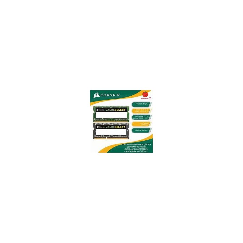 | Nom | Corsair CMSO16GX3M2C1600C11 Value Select 16GB (2x8GB) DDR3L SODIMM 1600 Mhz CL11 |